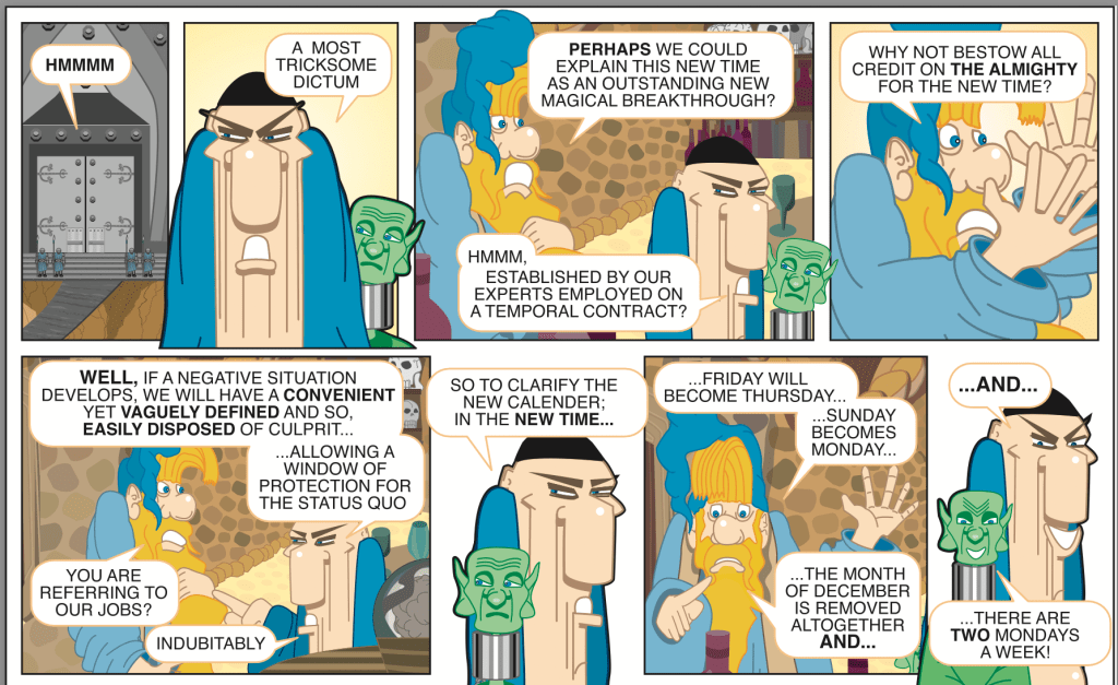 Hi guys, here are more pages of my cartoon strip following the misadventures of an out-of-his-depth wizard.