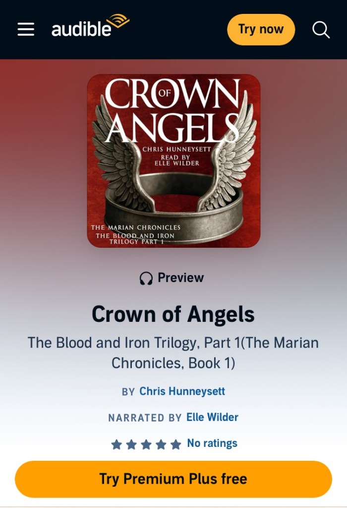 The audiobook of my fantasy adventure Crown of Angels is out now on Audible